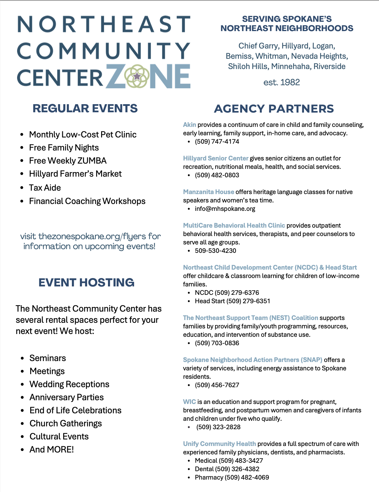 Know of any FREE events in Northeast Spokane? Email a flyer to zone@necommunitycenter.com.